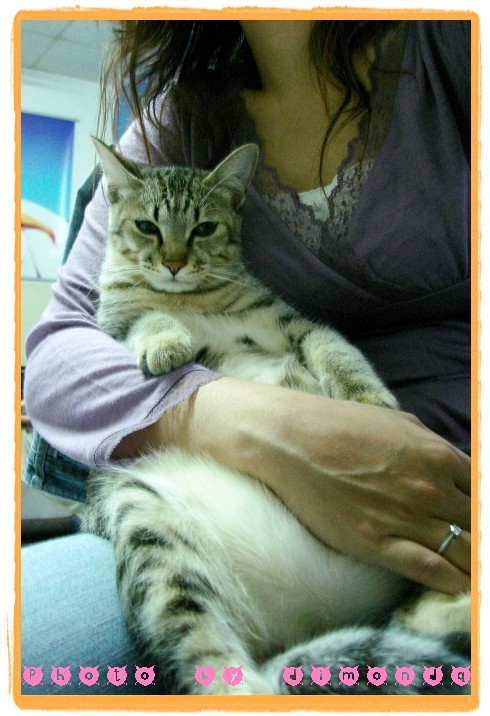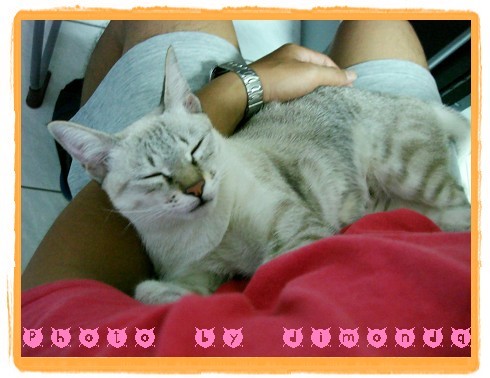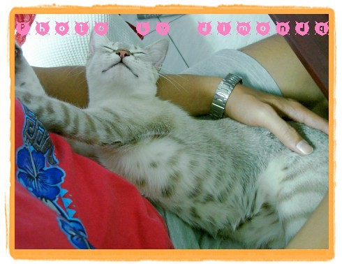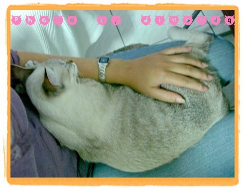 在把拔身上睡得香甜的FIFI~帶著滿足的微笑