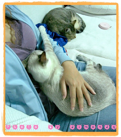 天氣變冷以後,FIFI喜歡趁我們坐在電腦前面的時候,窩在我們腿上睡覺