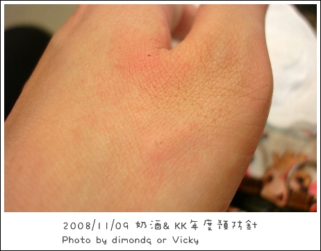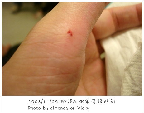 大拇指下方一個,好痛!腫了4、5天才完全消,沒想到奶酒會送我這樣的禮物阿!