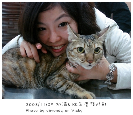 奶酒很棒!乖乖的打完預防針了!和媽媽拍張照~