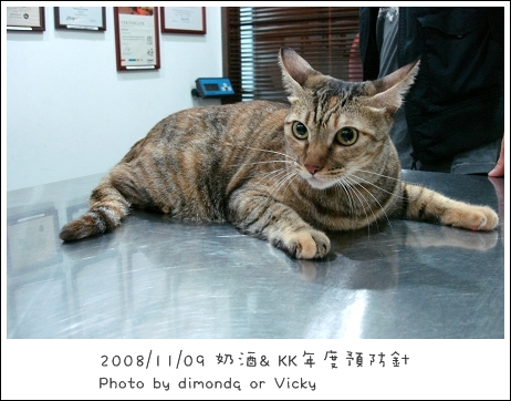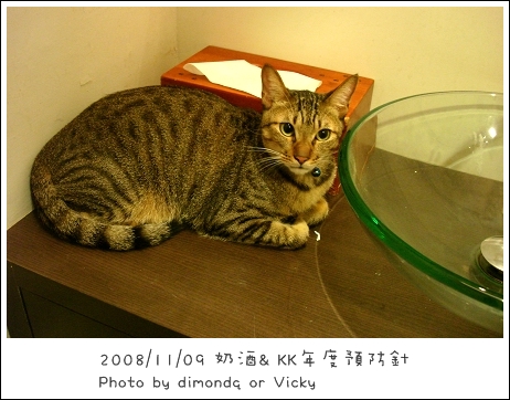 消毒完出診療室就看到KK窩在洗手台上~呵呵~貓咪都喜歡躲這裡耶!