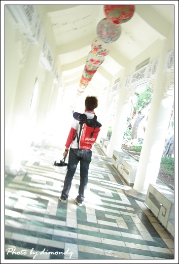▲在迴廊上拍了張像走進時光隧道的照片(其實是過曝的效果囉!)
