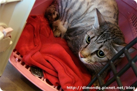 這天有點下雨,本來要一人提一貓搭捷運去,但是...實在有夠重,走沒幾步路就放棄,想說雨不會太大,還是騎車去吧!