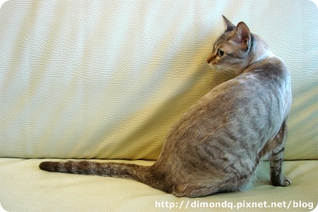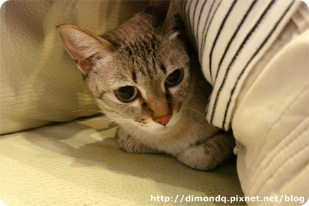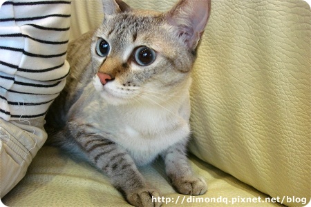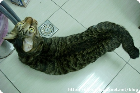 臭屁股一直在我腳邊繞來繞去,磨蹭又磨蹭,也喜歡人家摸他,我蹲下來和他玩,他還把攀到我腿上來,超可愛的!我有錄了一段影片,不過我的聲音好奇怪,不想放上來~哈哈!