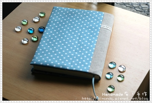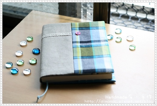 ▲這次挑來挑去,色系不斷變換,最後定調為藍色系,點綴上柔和的蕾絲和桃紅小釦子,讓中性色系的書衣也增添了柔美的氣息