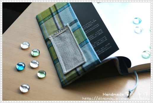 ▲我選擇的款式是雙面書衣,兩面看起來是不一樣的,若是西翻的書則封面是藍綠格紋這面