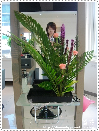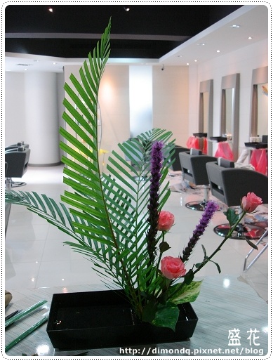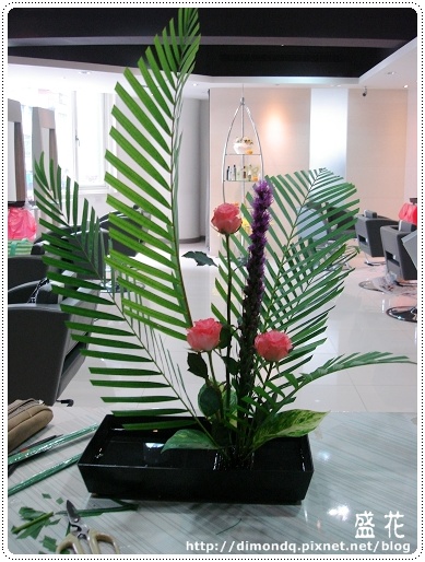 ▲看完老師的示範與講解,領了今天的花材~有椰葉、玫瑰、(紫色的花叫什麼來著,待我查查) 和黃金葛