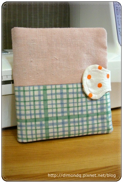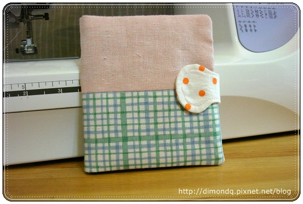 ▲右邊放面紙的部份,因為一直無法放棄那塊粉紅色格子布,所以就靈機一動把她搭上了~喔耶!左邊則是放棉棉的袋子,縫有暗釦