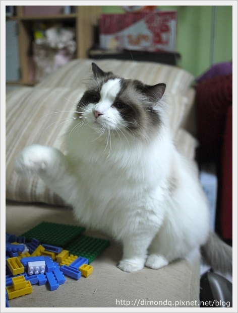 ▲香媽說都沒看到卡布的正面,來來來~正面在這兒,把拔正在用積木跟她玩