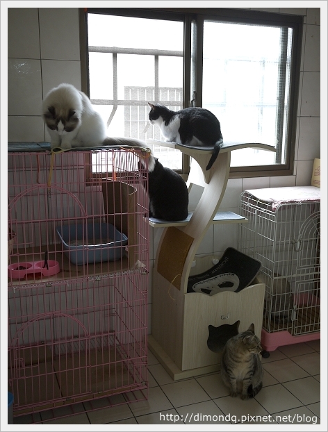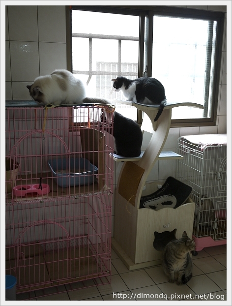 ▲忘了是哪個周末的好天氣,五貓都在貓房裡,所以拍下這張五貓合照~哈哈!硬要說是合照,有看到FIFI嗎?!