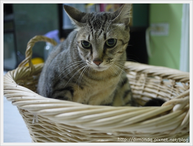 ▲特地帶回家的大藤籃,讓貓兒們當窩剛剛好!
