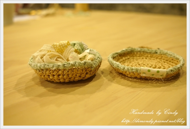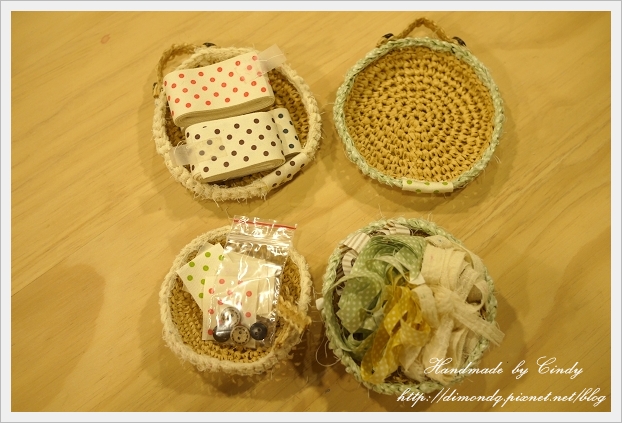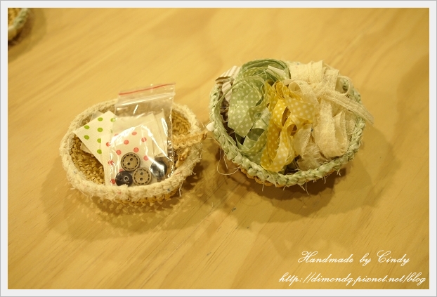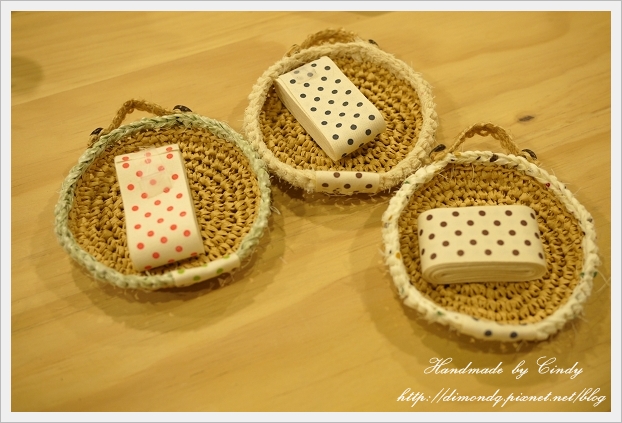 這是捲老師的三個示範作品,我沒放杯子上去,放了織帶哈!