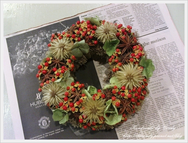 ▲這是一個平放的花圈,適合放在美麗的盤子上欣賞~