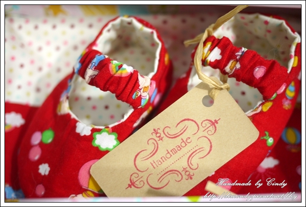 ▲把圍兜和小鞋放進盒子裡,綁上handmade標籤,送到艾蜜莉手上,謝謝艾蜜莉的支持與鼓勵唷!!