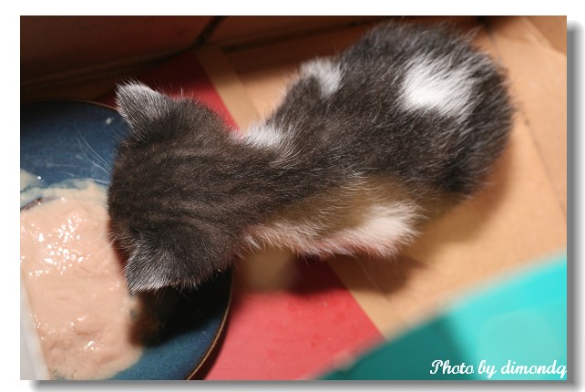 小貓很捧場,雖然不太會吃,但也窸窸窣窣的吃了不少