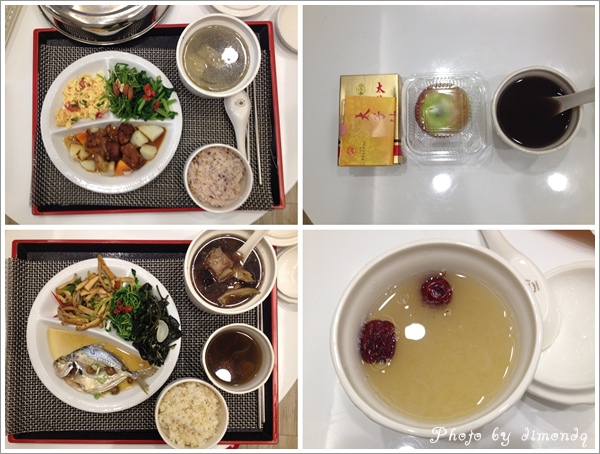 五穀飯我超愛,每餐都吃光光,菜色也很豐富,一主菜、一配菜還有一定會有兩樣青菜,湯品更是基本配備,晚上還會多一碗杜仲腰子或杜仲豬肝之類的補湯,湯類我為了要追奶非常努力喝,除此之外月子中心提供的發奶茶和養肝茶,我也是一天喝3-4壺